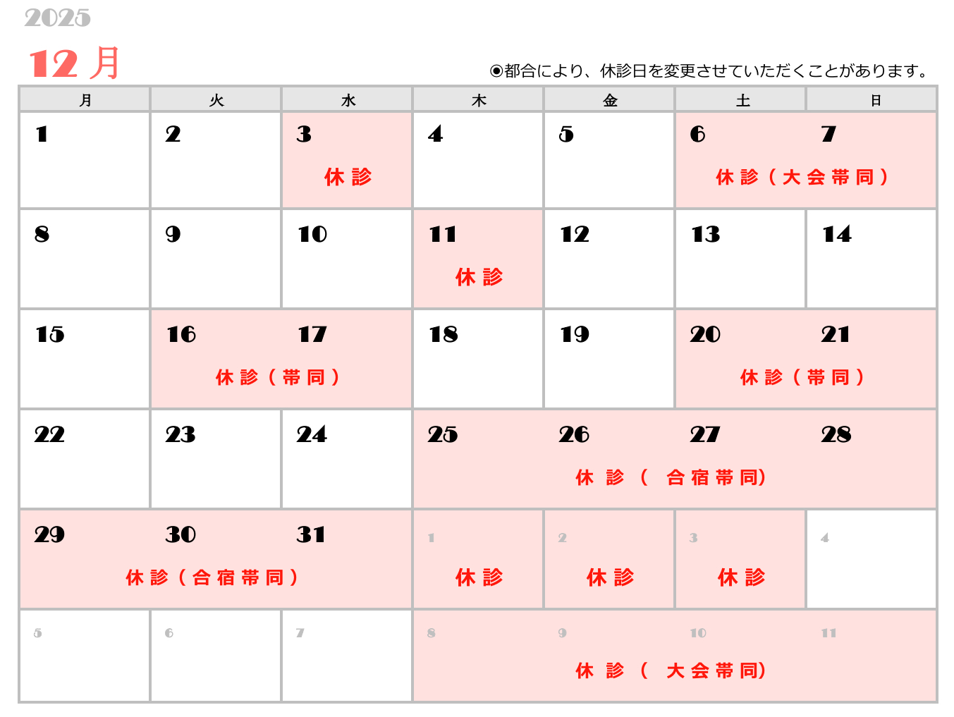 今月の診療案内